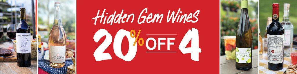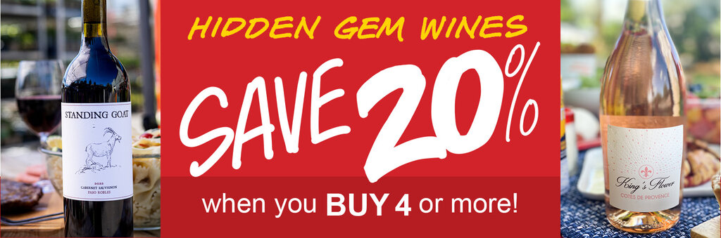 Save 20% when you buy 4 or more HIDDEN GEM WINES. Prices must end in ".98". Now thru 5/27/25.